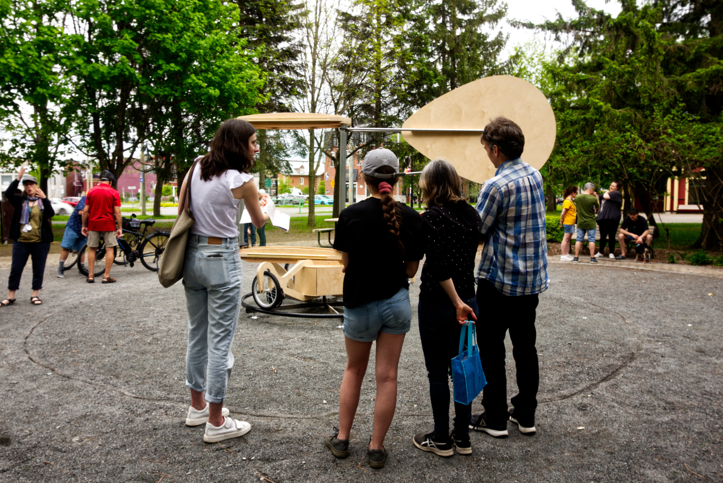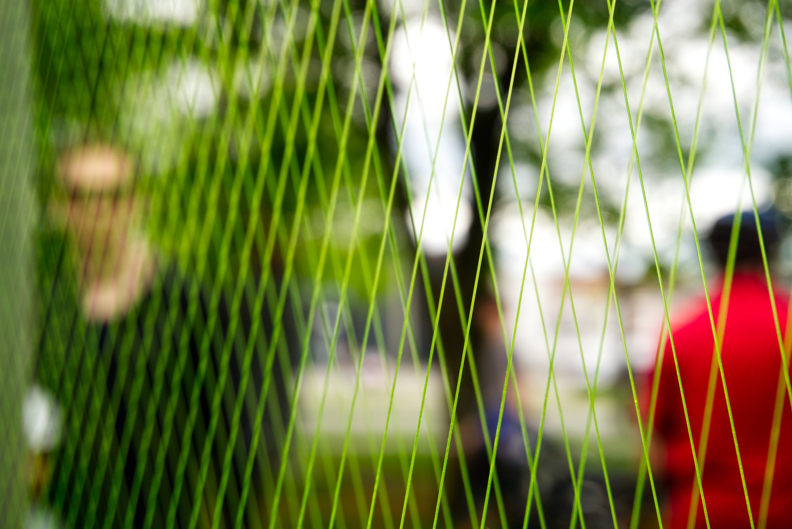 Centred around a deconstruction of the classical acoustic æolian harp, the subtle fluctuations of 119 tensile wires suspended in open air are shaped into a continuous live wind-propelled electronic sound performance. As wind flows through the instrument, the whole apparatus revolves, creating a sound field pirouette.